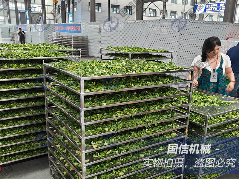 2025年5月16日,客戶帶幾百斤芹菜來廠試機(jī)烘干,不僅要烘干后的芹菜干,烘干中產(chǎn)生的冷凝水也要打包二次加工再出售,芹菜烘干全程用了十個(gè)小時(shí)左右,成品
